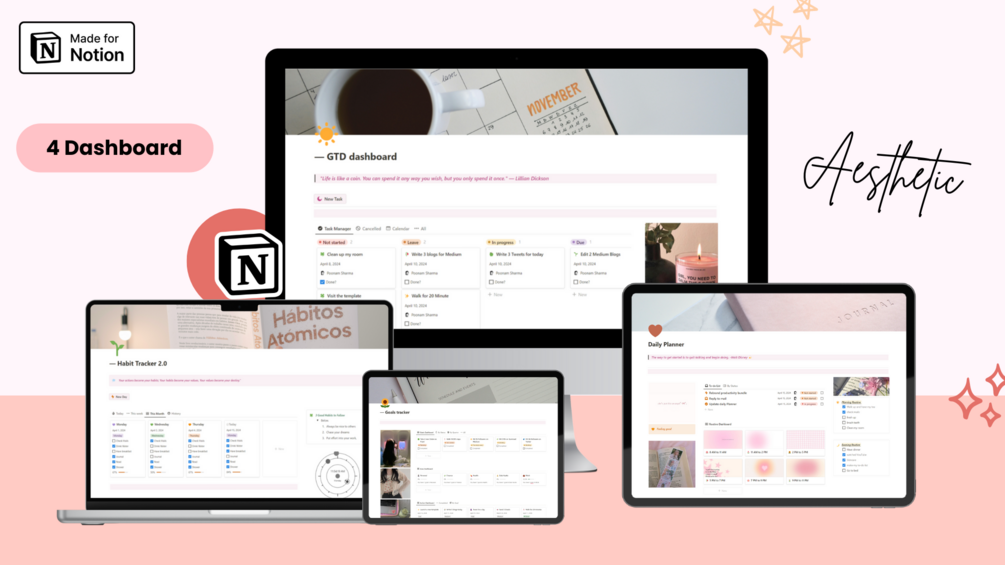 With 4 customized pink theme templates, the productivity bundle is the perfect fit for freelancers, students, and working professionals. Â