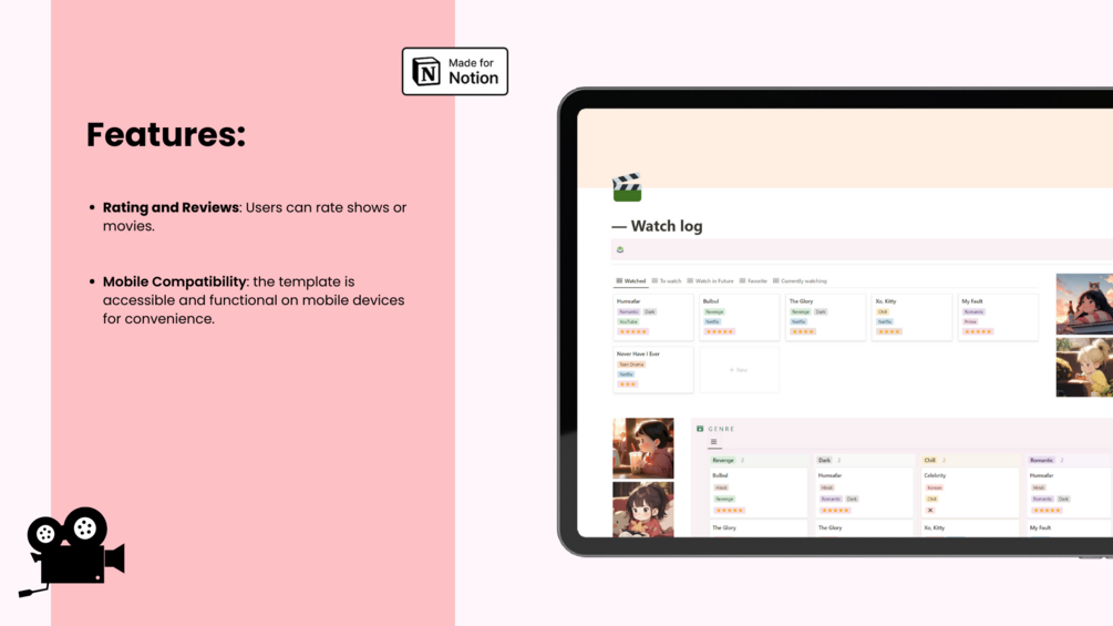 Simplify your entertainment tracking journey with this Watchlist Tracker Notion template.
